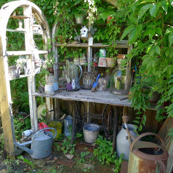 1. Me gustan mucho las bases de máquinas de coser antiguas, pero siempre en exteriores, porches, jardín, más que en interiores, son realmente una maravilla